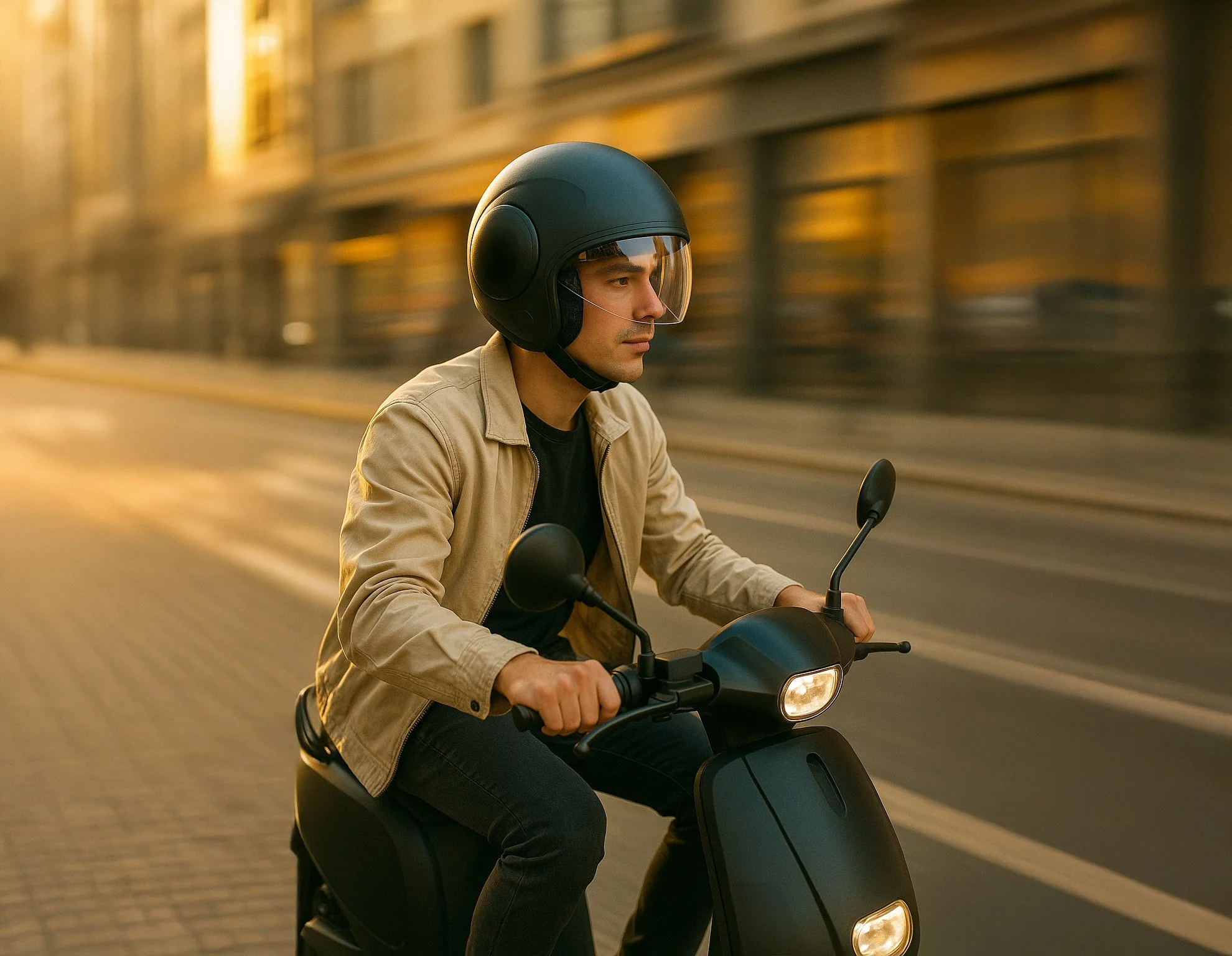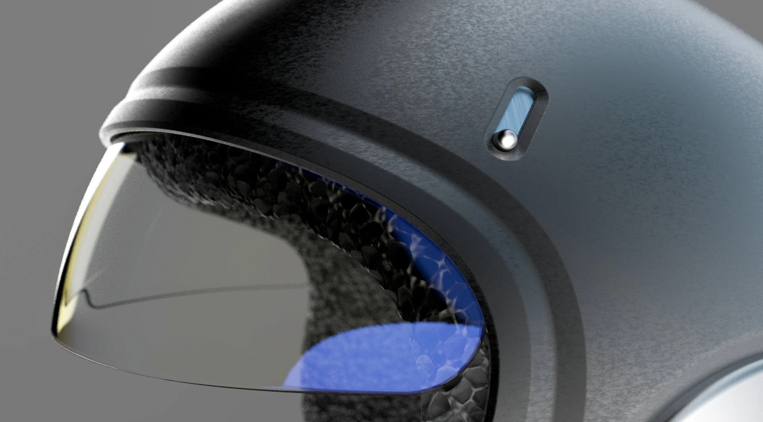 The helmet has modular sides for potential future upgrades like navigation or safety alerts.